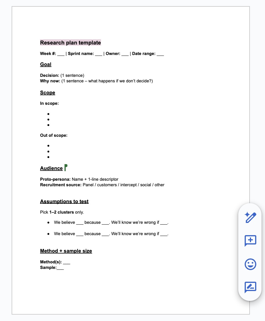 When filling out your card, be ruthless about what is out of scope. You don’t need to answer everything at once. If a question doesn’t directly serve the decision this week, save it for next week.